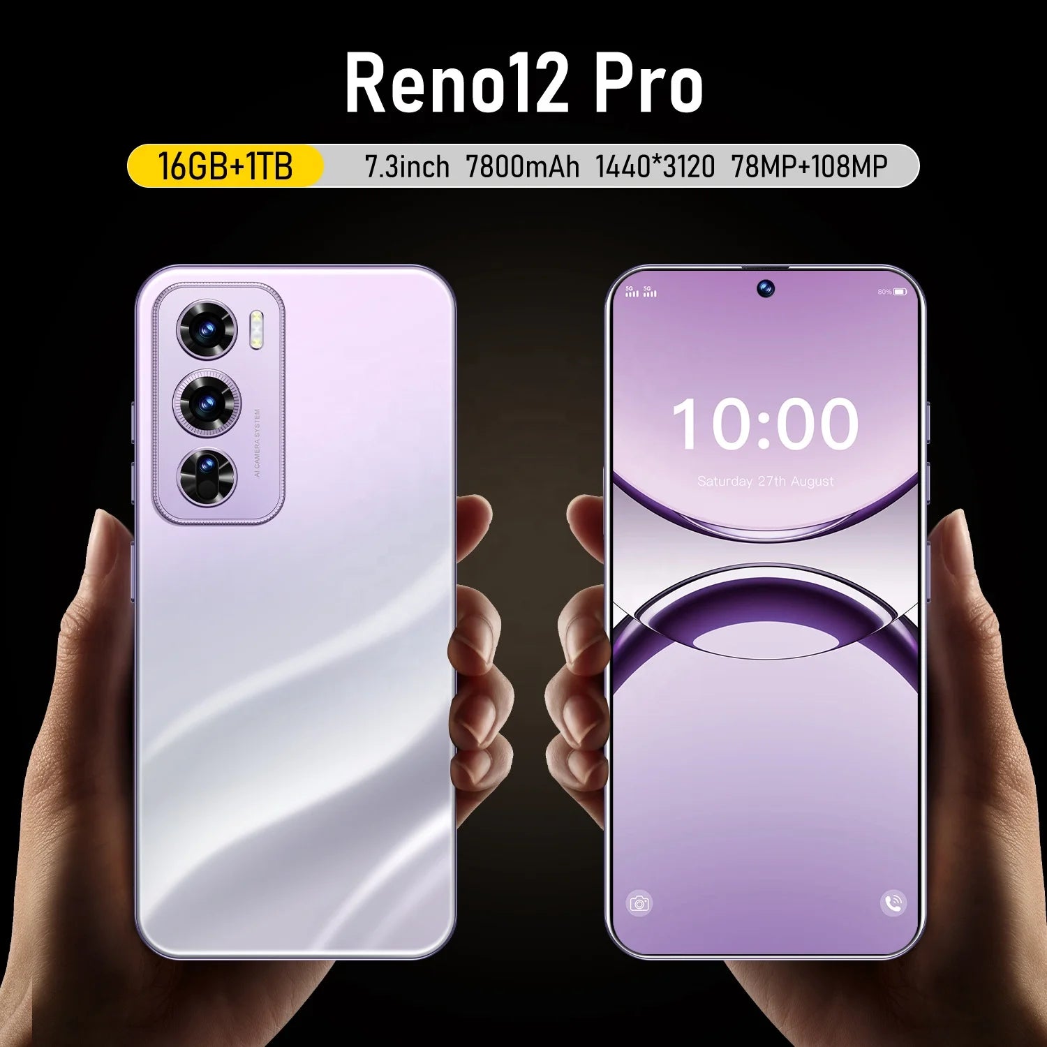 Factory Direct Original Reno12pro 16GB+1TB 7.3 Inch Android 14 5G Unlocked Dual Card Smartphone HD Facial Recognition 7.3 Inch