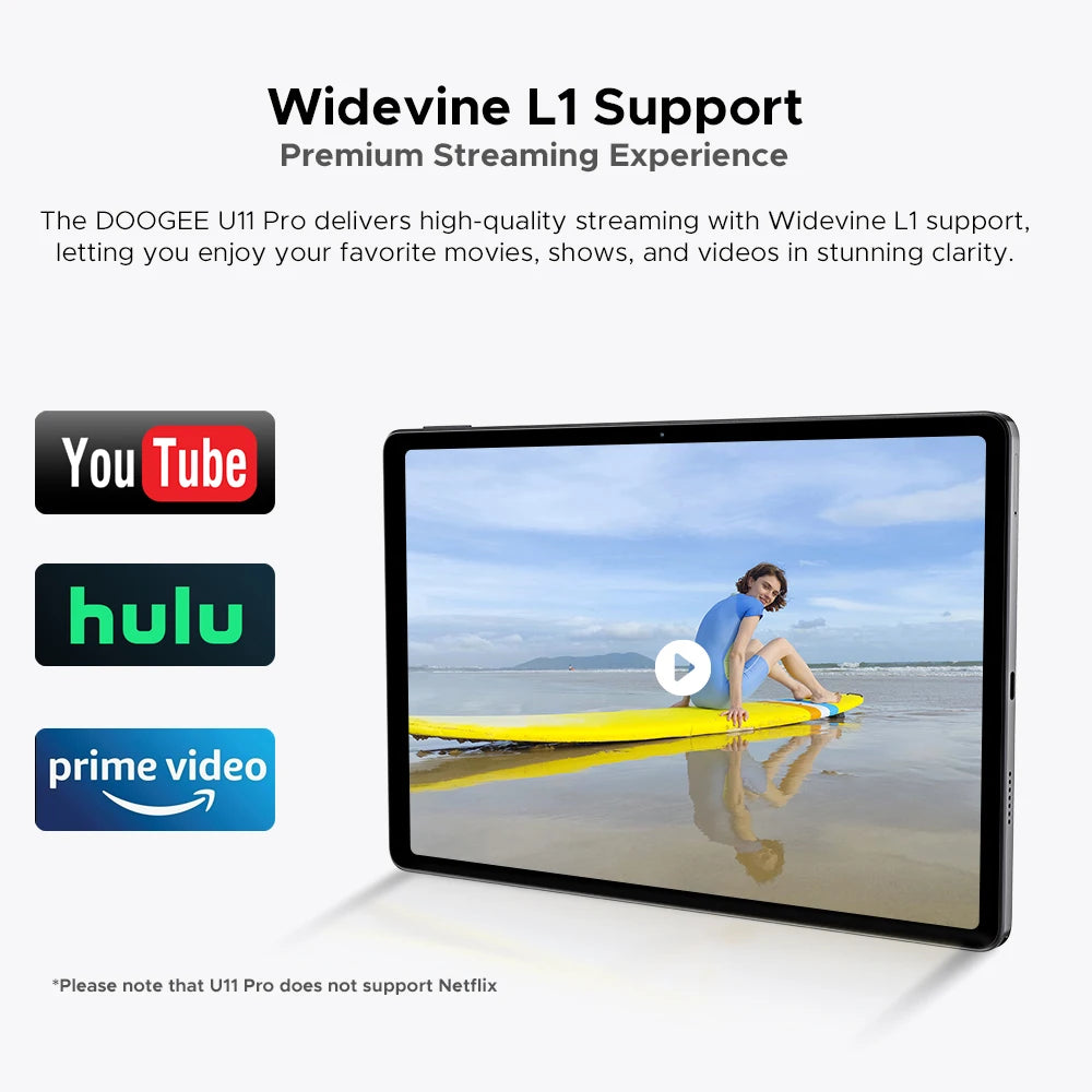 Global Version DOOGEE U11 Pro Android 15 Tablet 30GB(6+24) 256GB 11" HD 90Hz Display 8580mAh Battery Unisoc T7200 Widevine L1