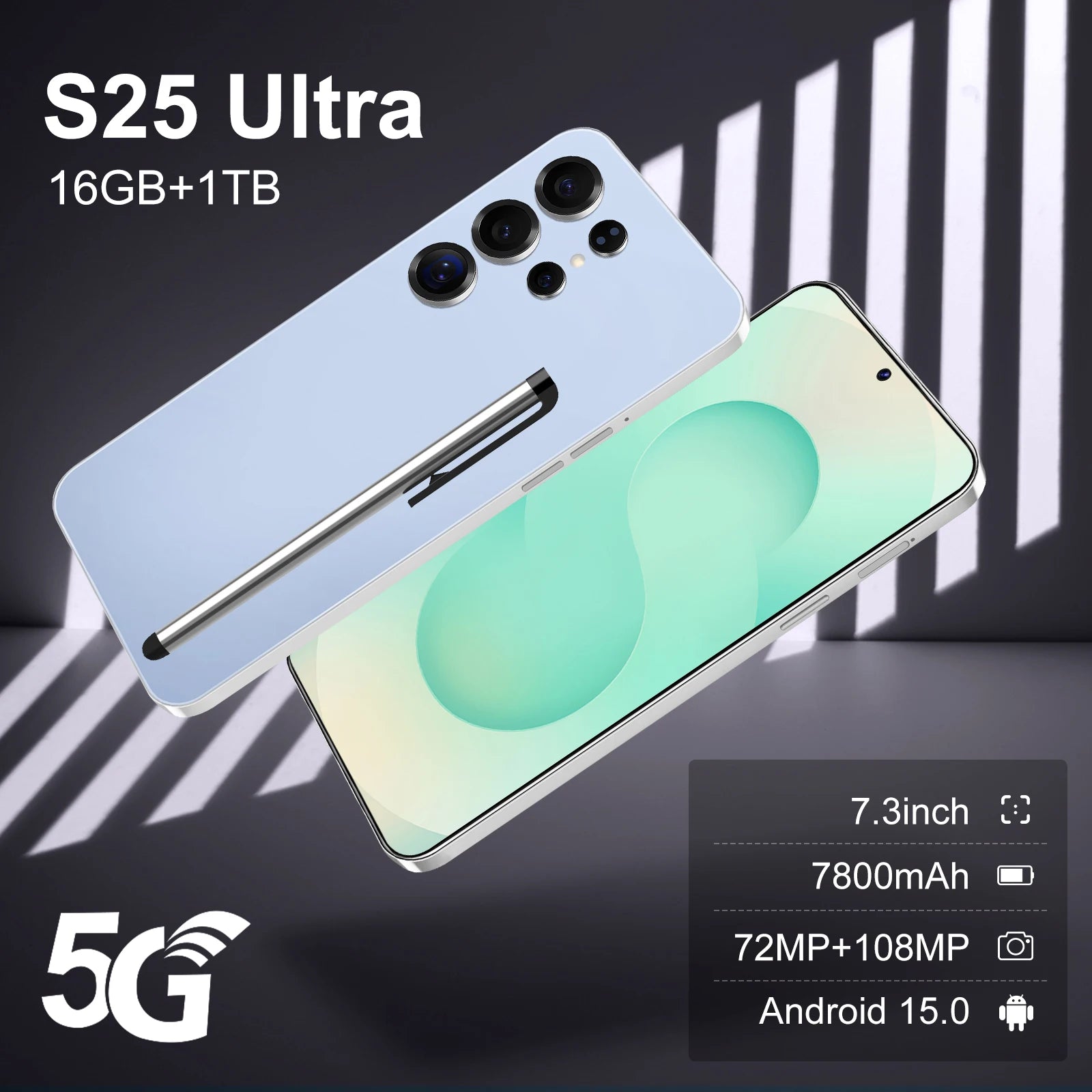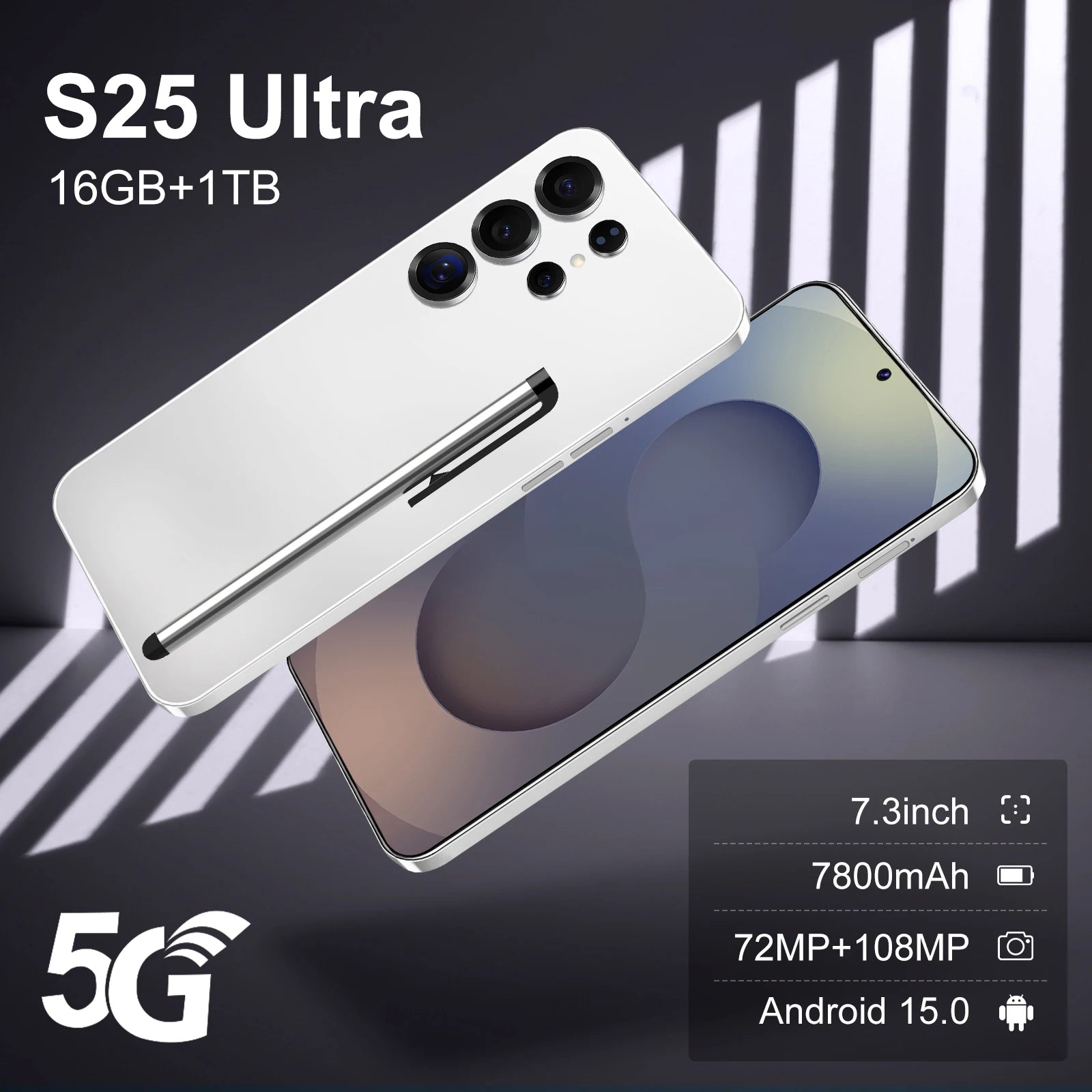 Hot Ultra 5G S25 Smartphone for Gaming Deca Core Android15 S25 Snapdragon LED Display Dual Sim Card Deca Core CPU Excellent