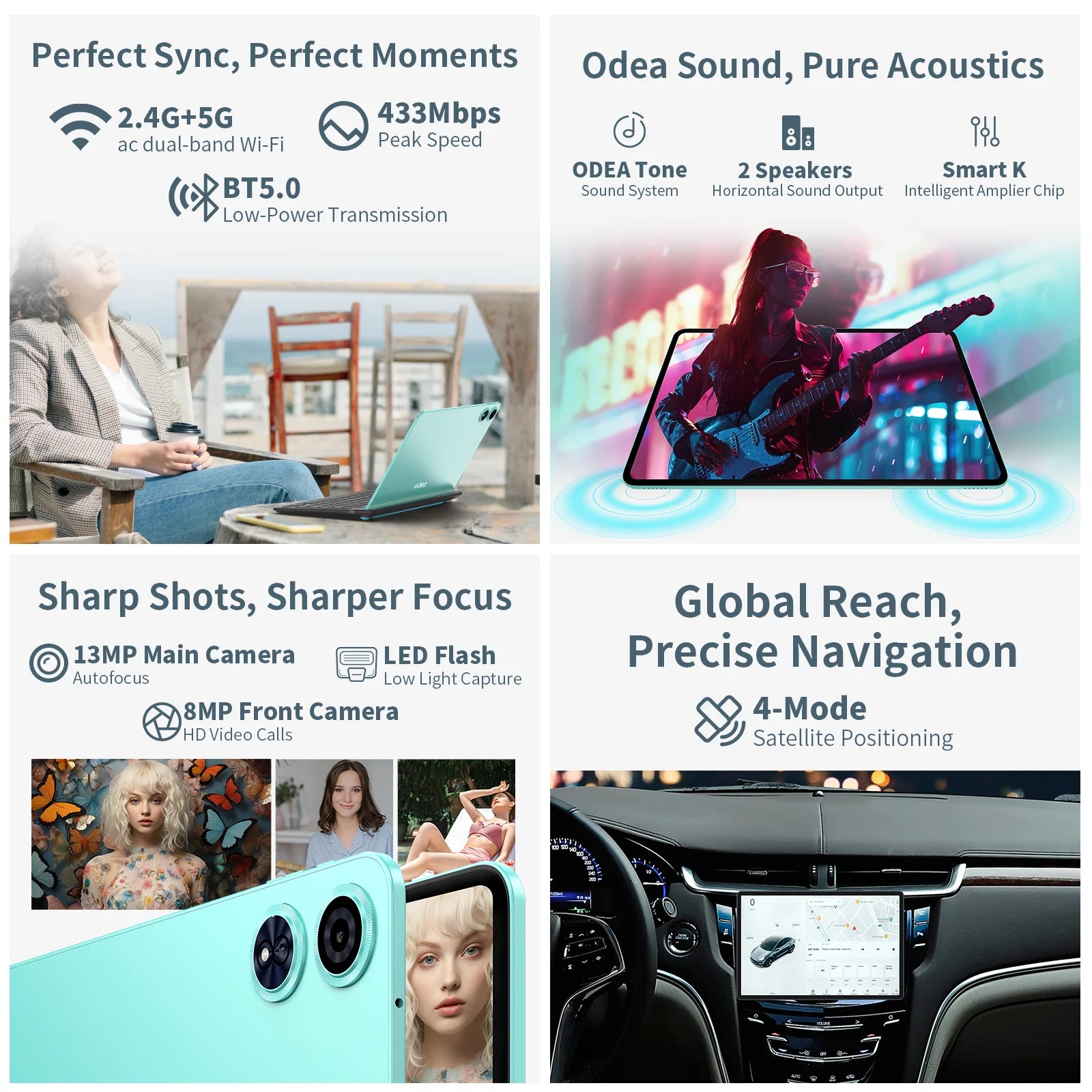 Odea A12 Android 14 Tablet, T606 8-core, 4GB+8GB RAM 128GB ROM, 12 inch 2000x1200 Display, 8000mAh, Widevine L1, 13MP Camera