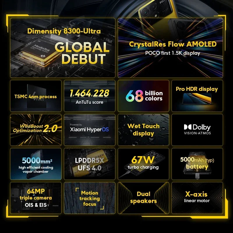 VAT Include Global Version POCO X6 Pro 5G Smartphone Dimensity 8300-Ultra 6.67" 1.5K AMOLED Display 64MP camera 67W charging